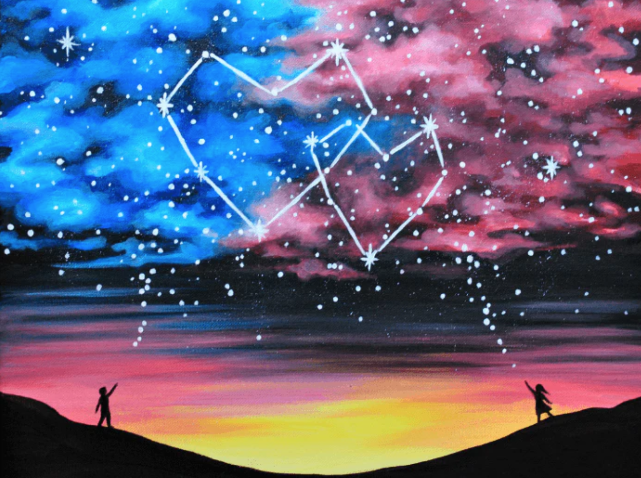 LA TÊTE DANS LES ÉTOILES ET UN PINCEAU DANS LA MAIN, FAIS RAYONNER L’AMOUR AU FIRMAMENT ! En couple ou pour célébrer l’amour, laissez parler votre cœur, la créativité suivra 🙂