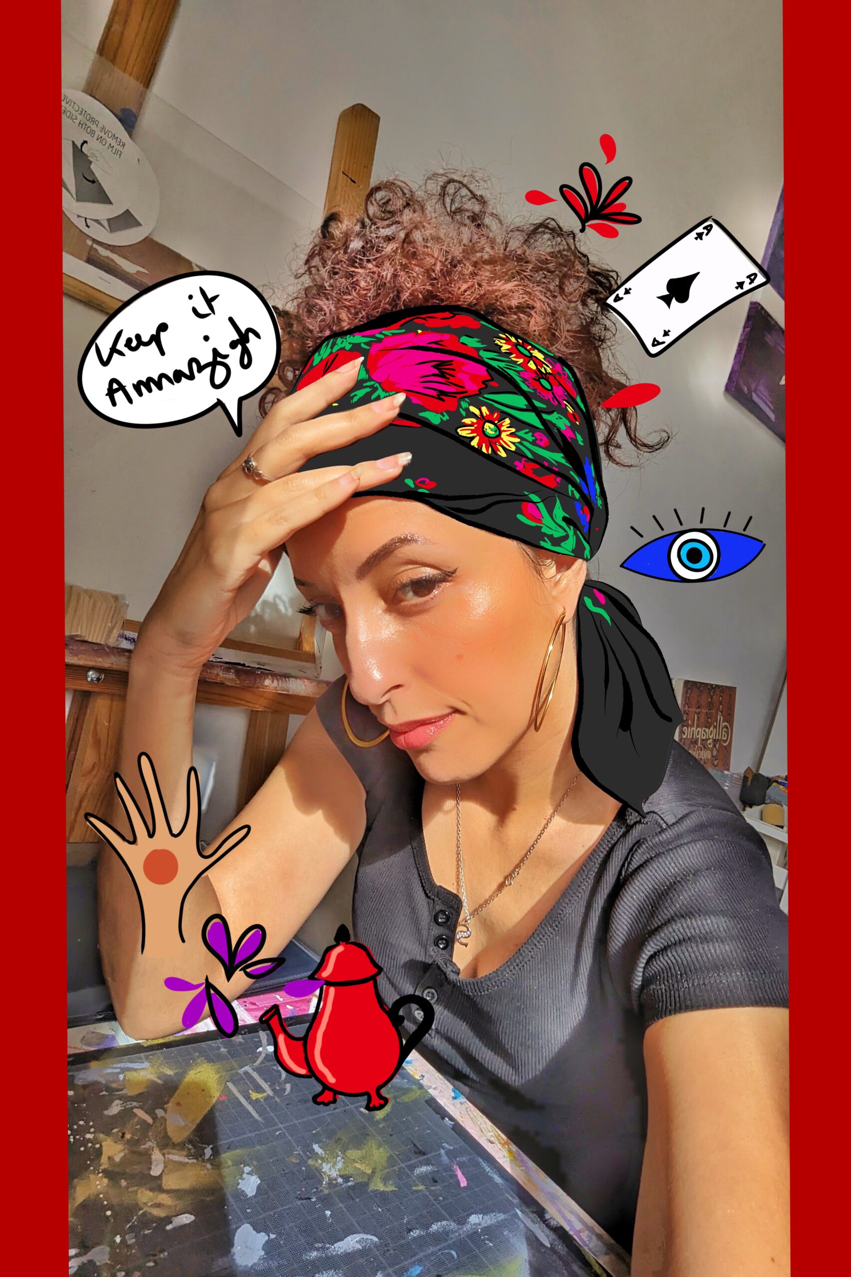 Guidé·es pas à pas, vous explorez son univers riche en symboles amazighs, en couleurs et en émotions, tout en laissant votre propre sensibilité s’exprimer. Entre deux gorgées et un coup de pinceau, explorez des thématiques chères à son univers : l’identité, la mémoire, la résilience et les symboles amazighs. Collage, peinture, écriture libre… chaque participant·e repartira avec une œuvre unique, personnelle et pleine de sens.
